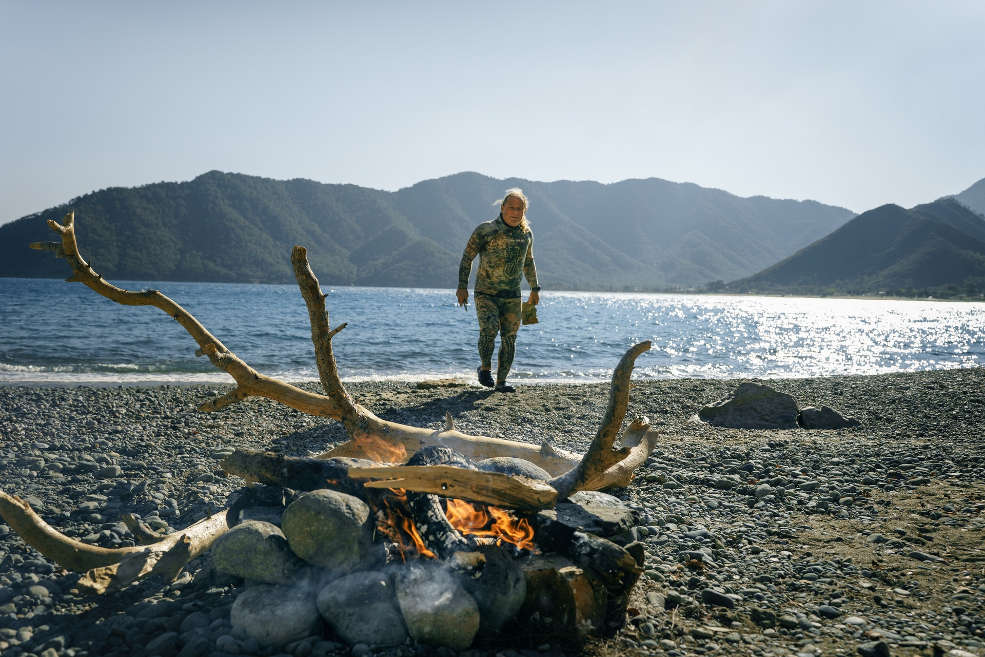 Утром забрал со скалы 3 литра воды и отправился в деревню Адрасан. 9 км и дикий пляж, там познакомился с местным дайвером. Развели костер и на камнях приготовили свежеподстреленную рыбу.