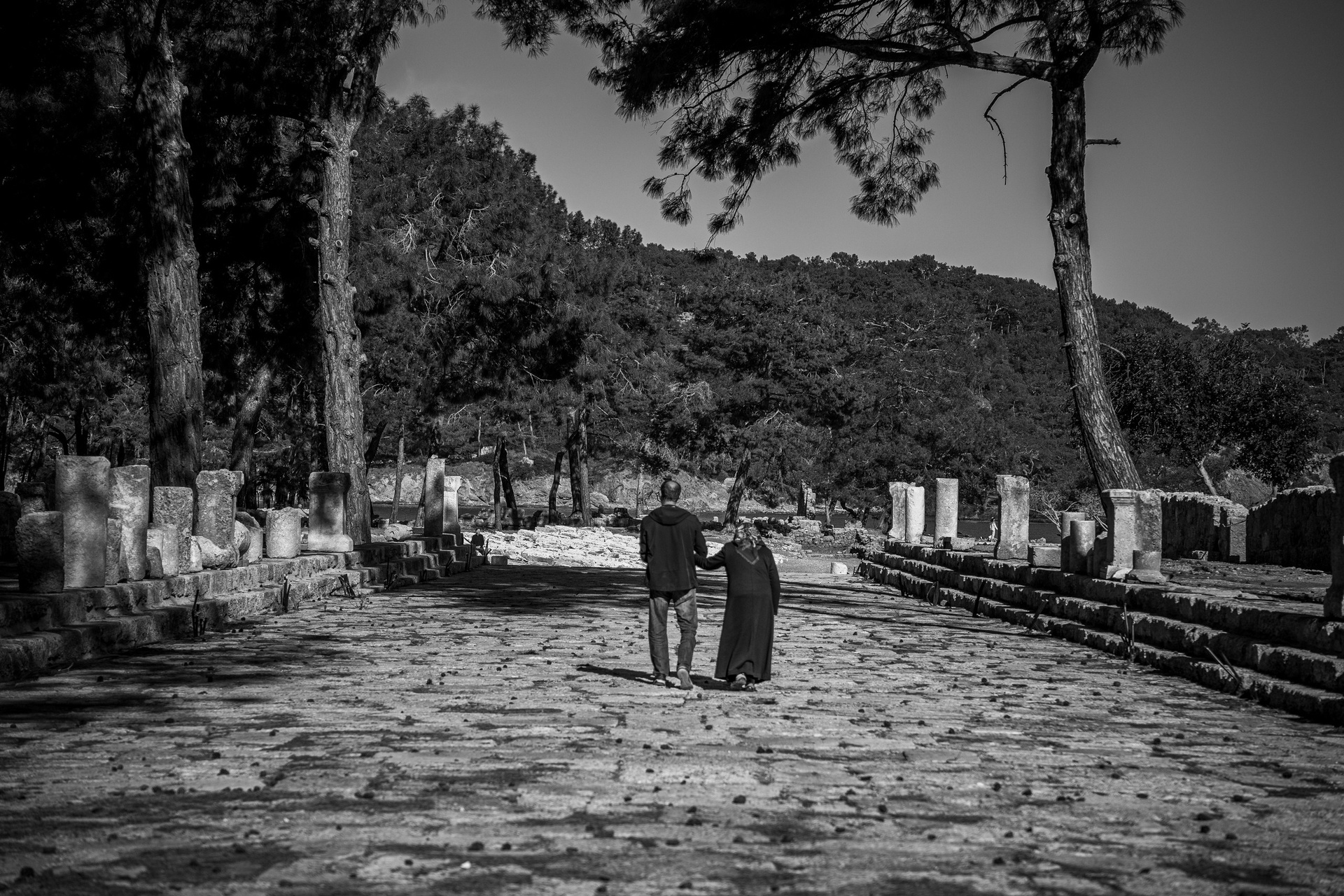 На следующий день поднявшись по тропе (вид с тропы на фото 3 и 5) уже был на территории античного города Фазелис (фото 7) здесь было много туристов. Вообще сюда вход стоит 10евро, что я считаю дорого, для того чтоб посмотреть на руины. Но, мне из контролеров никто не попался. Амфитеатр здесь маленький и после Термесоса мне этот город показался не таким впечатляющим. Хотя здесь есть одни из ворот Адриана, по поверьям если пройти через них 3 раза петлей (но это не точно) загадав желание, оно сбудется. Проверять не стал, пошел снимать гору Олимпос и озеро (фото 8)
